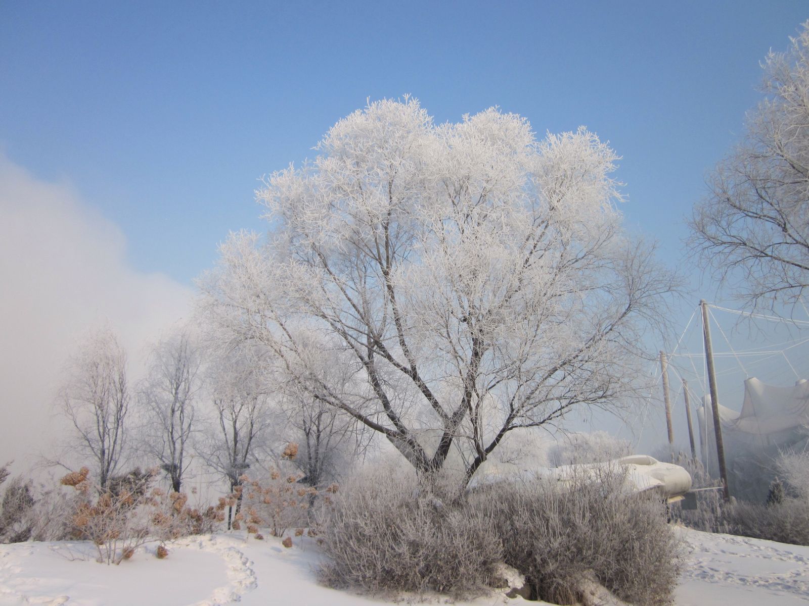 我记得吧里不少人没见过雪,整理照片发现了以前拍的雾凇(不知是啥请自行百度),分享一下。