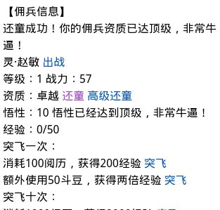 回复 来杯热可乐 :我就54和尚和95小宝,其他佣兵都拿去助阵。赵敏以前用40还童卷还不出直接解雇。。。
