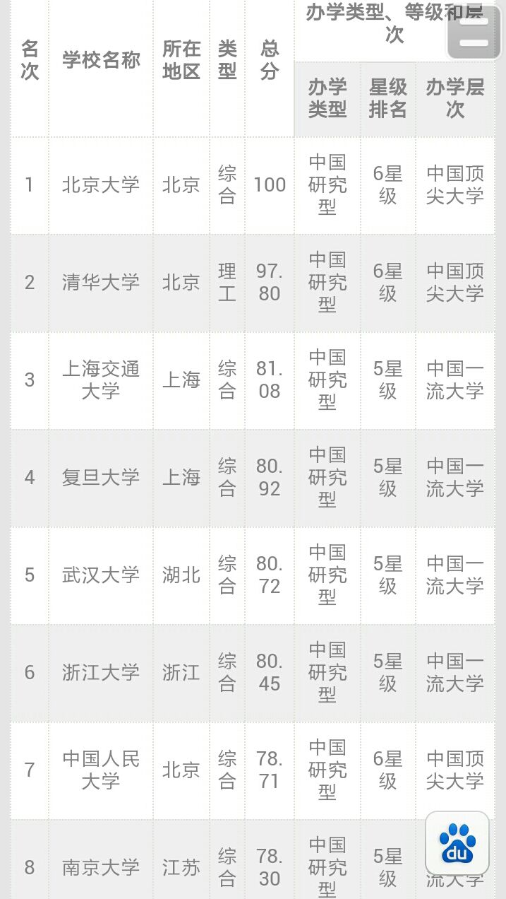 其实……我是来晒今天早上刚放榜的中国大学排行榜2014(校友网的评测结果,反正高考金刊、课堂内外这些常见的书是援引的它的数据)