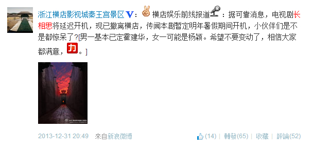秦王宫的微博不准的,出来的消息好多都是错的