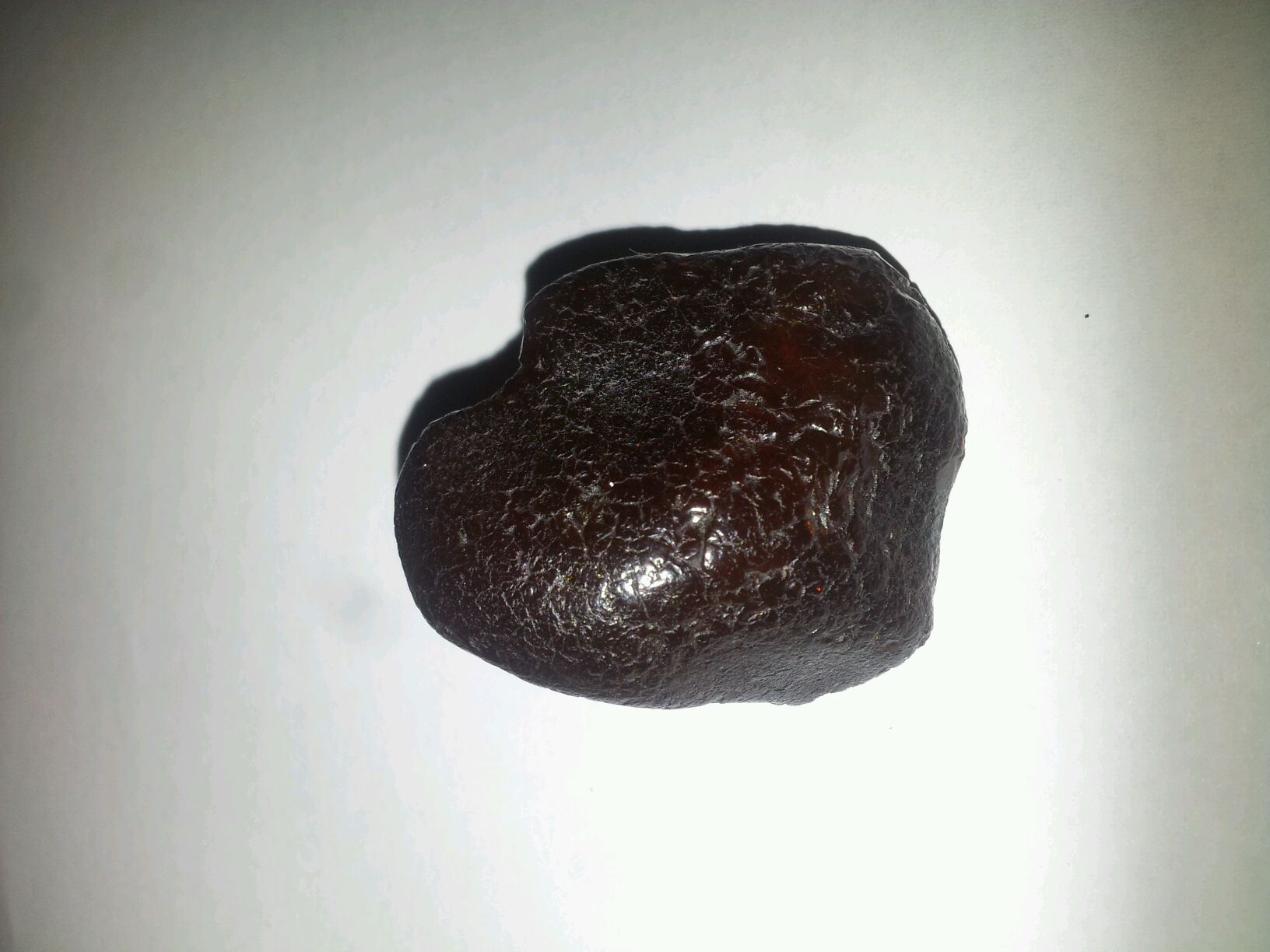 这块料子是乌料的血,就是深红色的珀体,对光红,有大量的冰裂纹,不适合多去皮,和缅甸的血的区别有几点,1,色层薄,2,冰裂纹多3,易氧化发棕色
