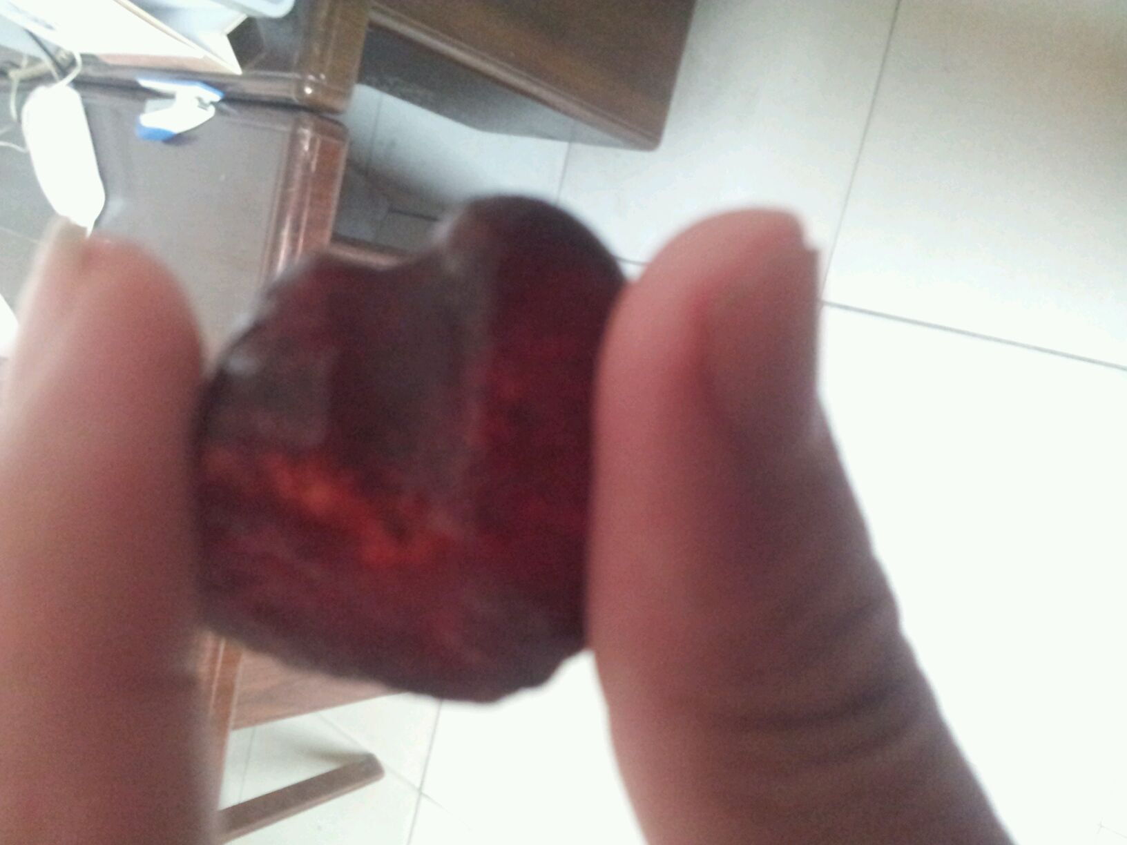 这块入袋了快一周了,用手盘了也有三天了,不过还是搞不清楚是什么料子的,貌似是乌料?不会是血珀吧
