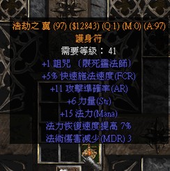 终于有个2技能15+fcr的,不过其他属性还是太少了