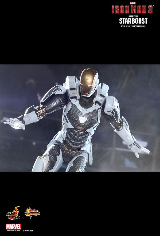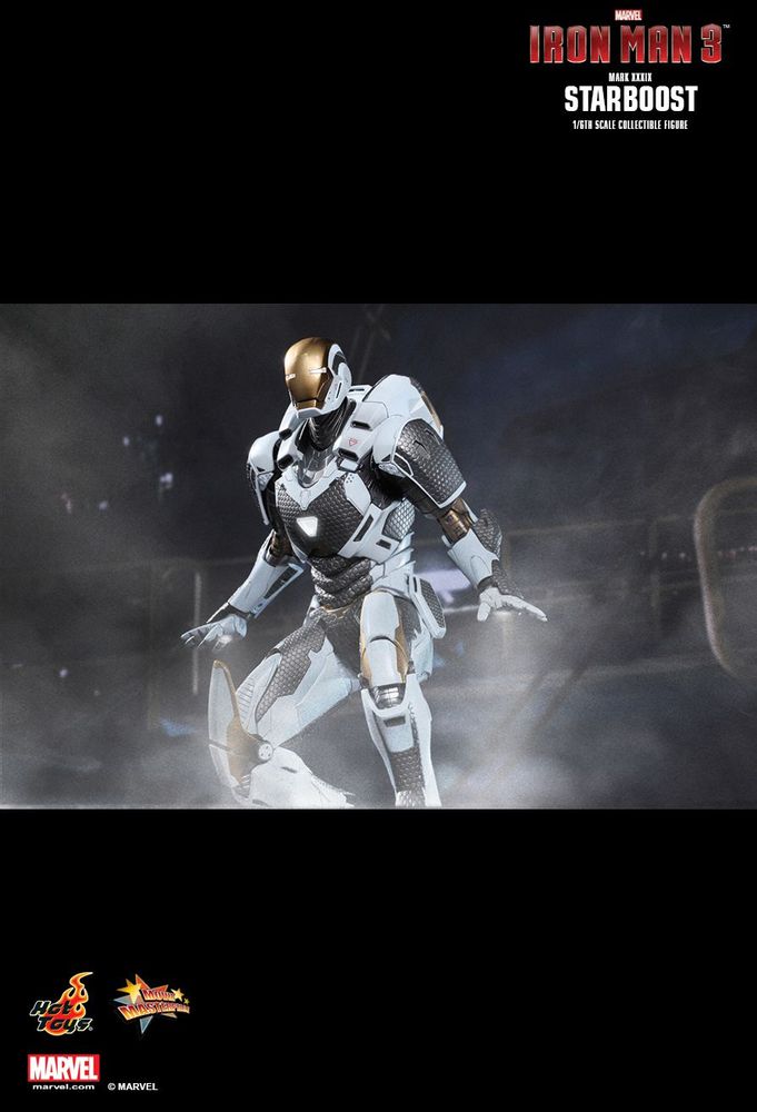 IRON MAN 3STARBOOST (MARK XXXIX)1/6TH SCALE COLLECTIBLE FIGUREThe Starboost (Mark XXXIX) suit has stood out from the crowd since its introduction in Iron Man 3. Its cool space suit design with mixture of white, gold, and black colors has helped turned it become a fan favorite among all the suits from the “House Party Protocol”.