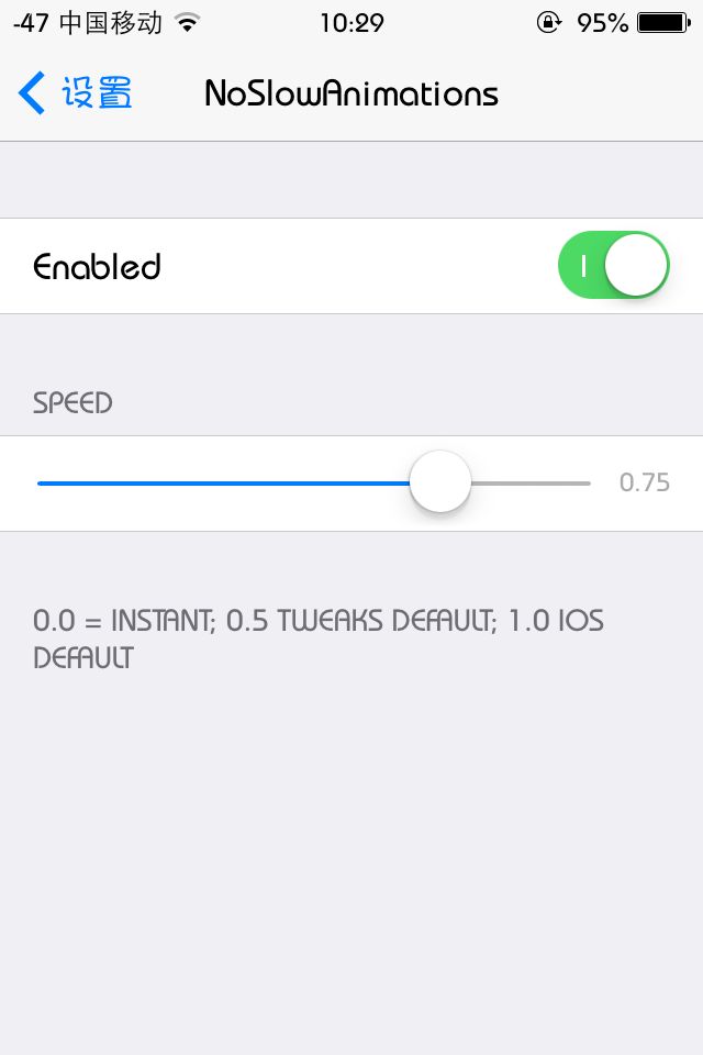 顺便想iOS 7的吧友推荐一款插件、安装这个插件可以加速系统动画 从此iOS7再无卡顿 …任何事情都有利有弊 7、6的越狱也是各有千秋… 我个人倾向于7、当初阻止大家只是想让各位吧友多一个选择 、越狱之后能修改的东西远比咱们知道的要多…