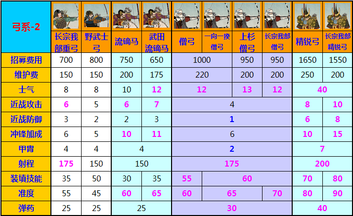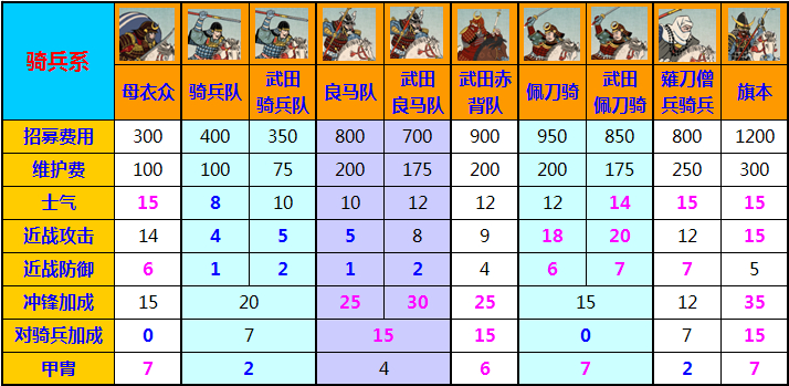 另外如果能在表里看到各个单位的技能名、特殊特征,就好了。毕竟想比睿山僧兵、岛津铁炮组,这些兵种的亮点都不在数据。