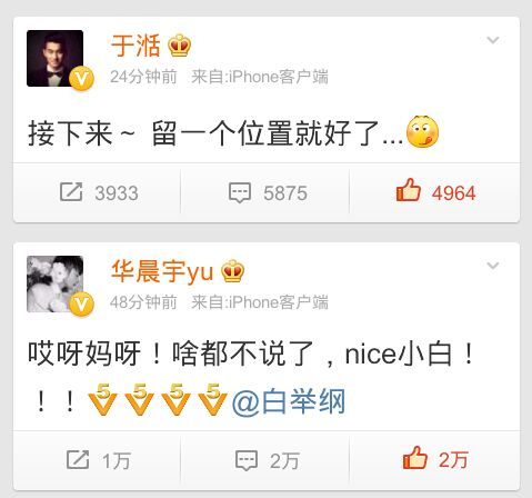 就是湉湉微薄那个吧表,那个吐舌头的表情,难道不像花花吗?花花经常吐舌头,大家都知道的。花花发的那个V5,快男得啦第五名的5弟是湉湉呀。