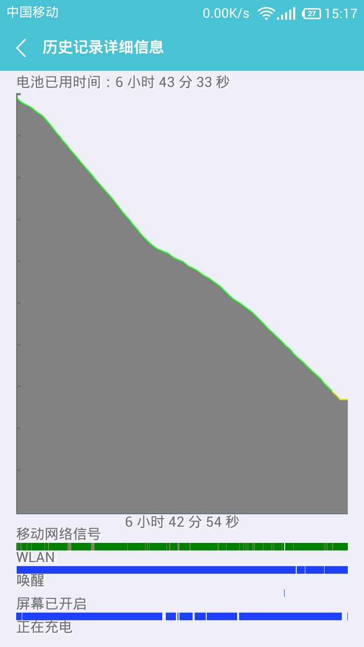早上大概八点多开始满电使用,看了一部2小时的电影,刷贴吧,上网看视频,额,基本就这些了。至今剩下26电