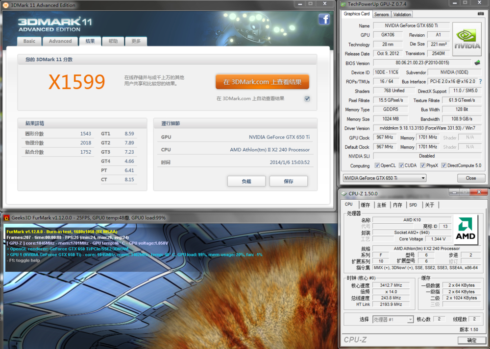 amd 240 换 amd 965,看看3dmark 11分数差距。