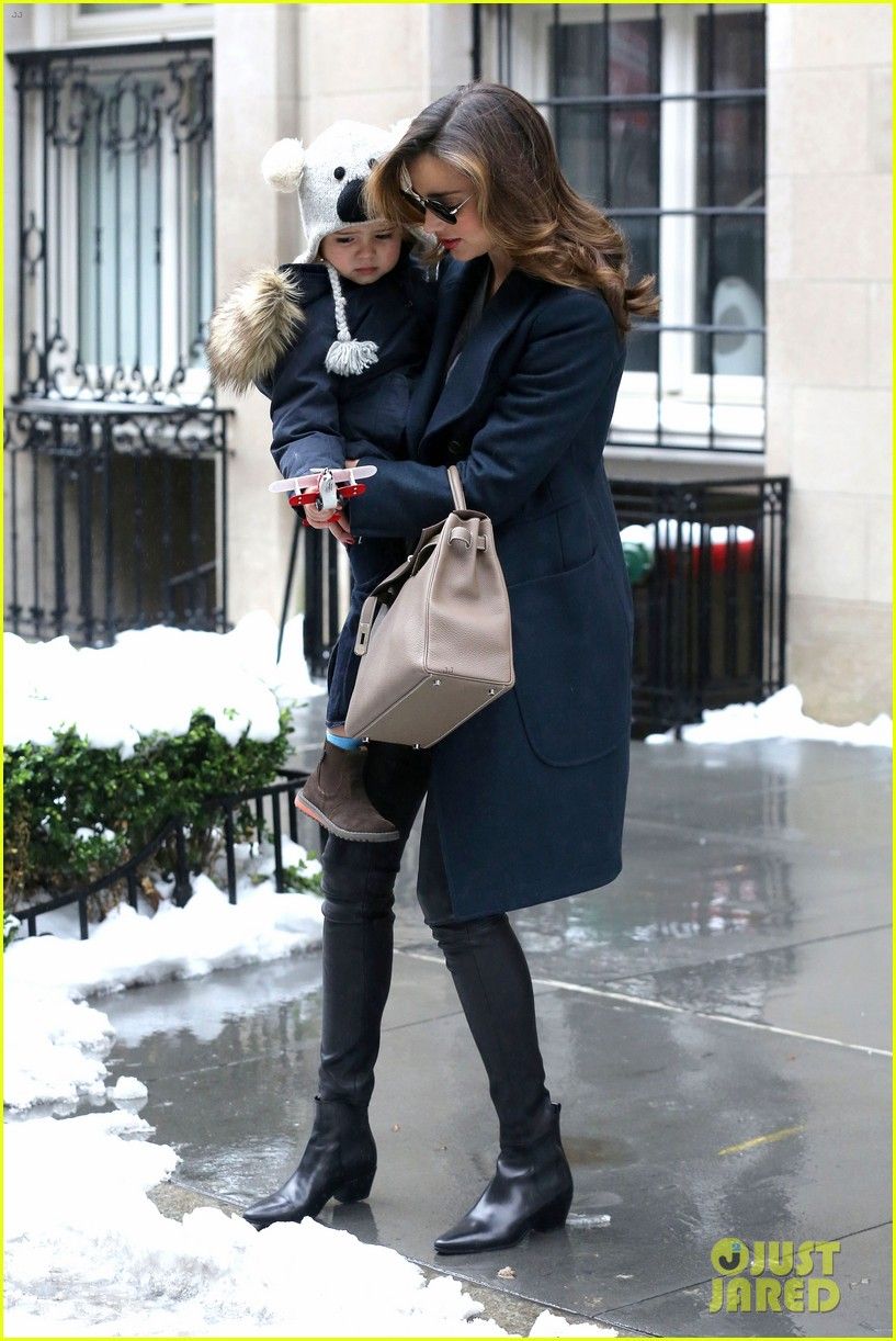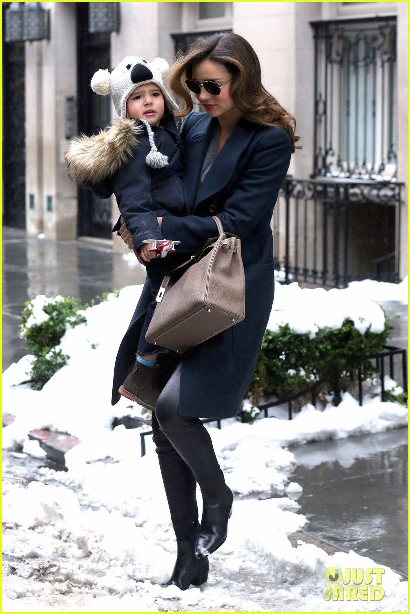 Miranda Kerr braves the rain as she steps out with her son Flynn and heads to her ex Orlando Bloom's home on Monday morning (January 6) in New York City.