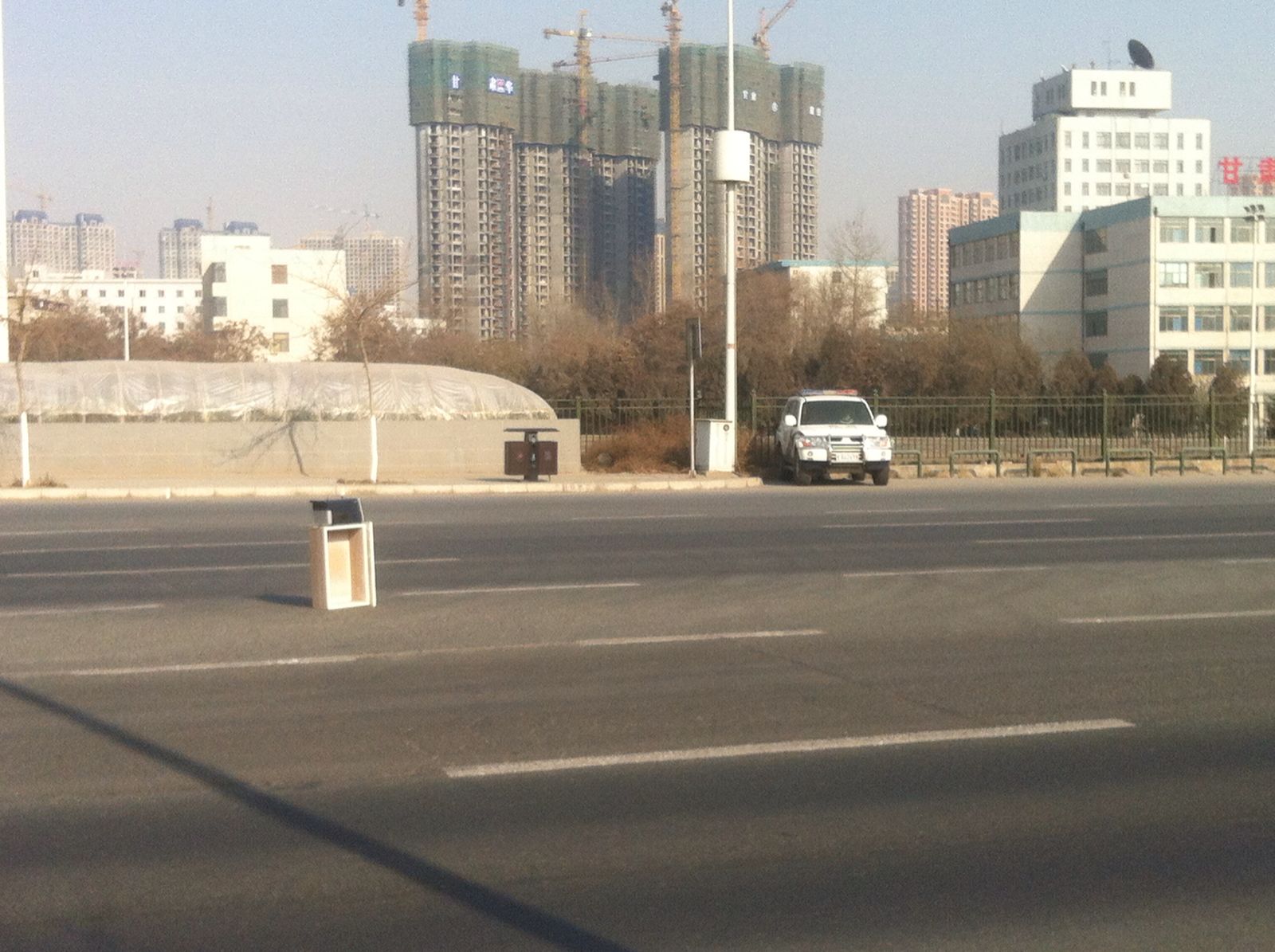 路过北滨河路发现路中间一台疑似电视设备,一公里处掉头一百码时速冲过来,准备搬到车上。一看额滴个娘测速仪。