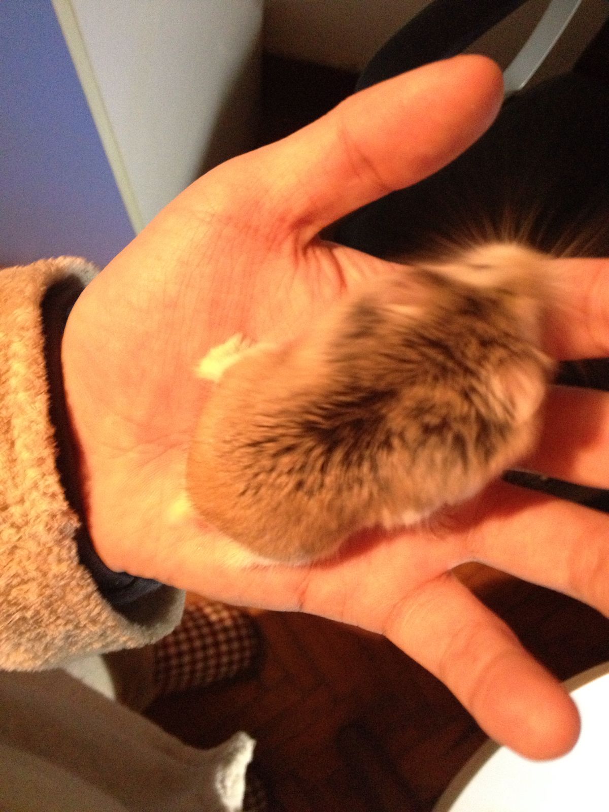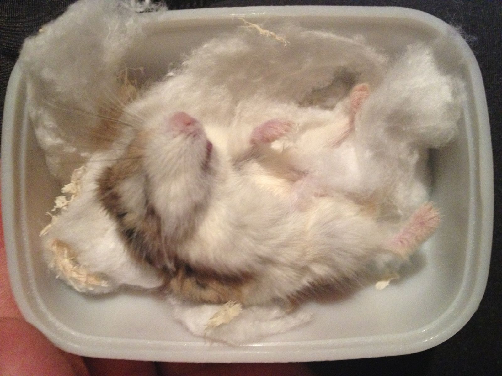 本来是直直放在里面的 它动了动 之前放在热水的瓶子上面 垫的木屑棉花还有纸巾 它自己嫌热还是怎么的 自己爬了下来