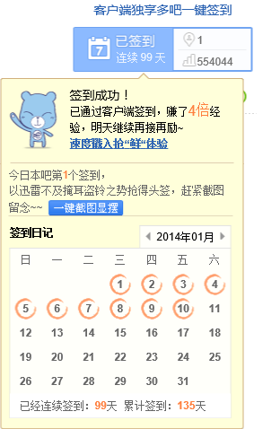 本人一直没短签,连续121天咯