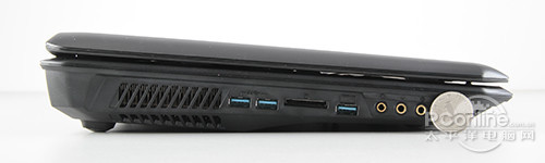 对于这类游戏本来说,重量和厚度就不用拿来“炫耀”了,毕竟那厚重且笨拙的身躯摆在那里,藏都藏不住。微星GT70最厚的部分比2个1元硬币还要厚一些,而前端最薄的部分也要有1.5个硬币厚,在重量方面,GT70的旅行重量为3.771kg,旅行重量达到了4.789kg,非常符合游戏本的身份。