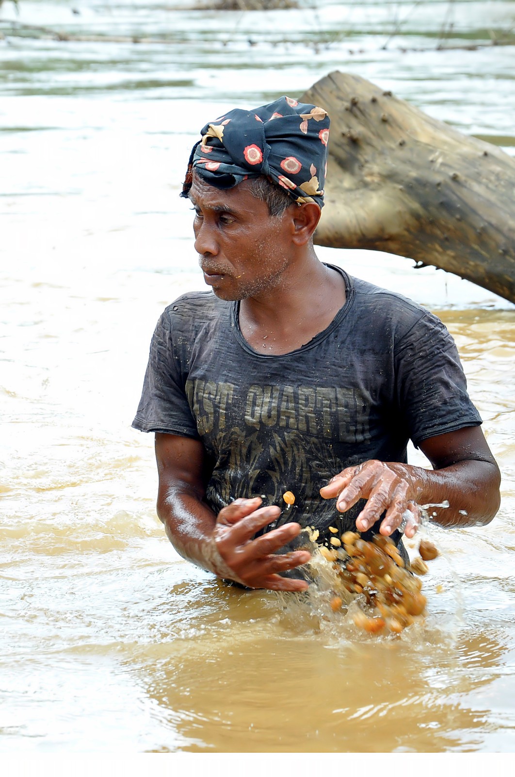 雨季来临之前,采石工人撑长竹竿在河流下游深掘,谙水性的或者憋一口气,“跐溜”潜入6米深处。为其担心时,他们已浮出水面,托着装 满砂砾的胜利小包。政府不鼓励雨季作业,因河水暴涨加大 工作难度,而且接地的缓冲带变得十分湿滑,风险很大。