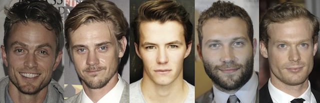 这5位男演员分别是(从左至右):电视剧《南国医恋》(Hart of Dixie)的威尔森·贝塞尔(Wilson Bethel)、电影《米尔克》(Milk)的博伊德·霍尔布鲁克(Boyd Holbrook)、电视剧《Anzac Girls》的托马斯·科克雷尔(Thomas Cocquerel)、电影《虎胆龙威5》(A Good Day to Die Hard)的宰·康特尼(Jai Courtney)、电影《佚名》(Anonymous)的萨姆·瑞德(Sam Reid)。