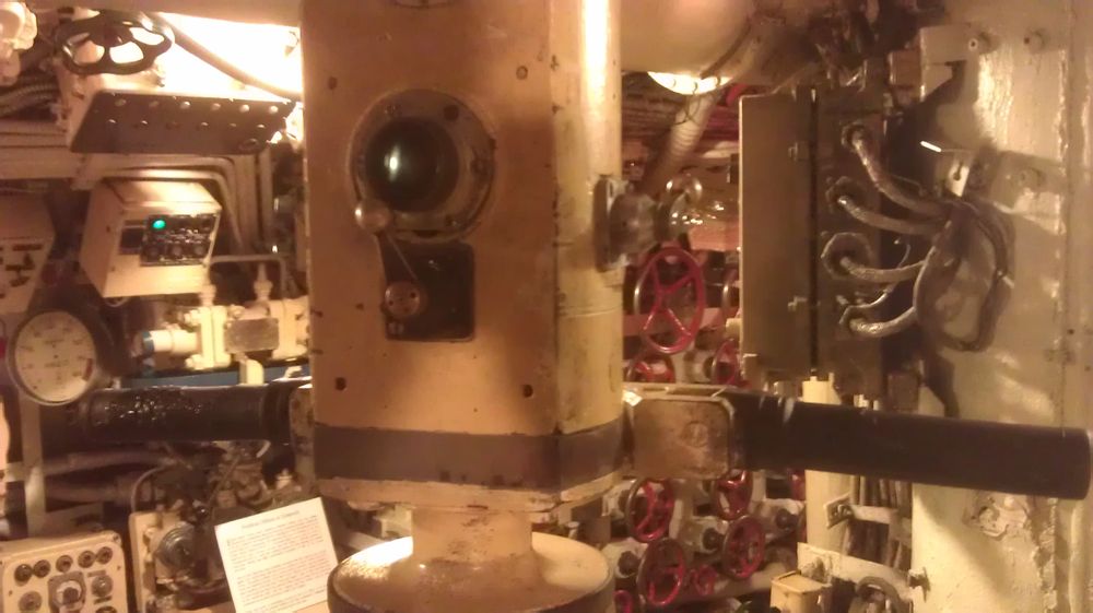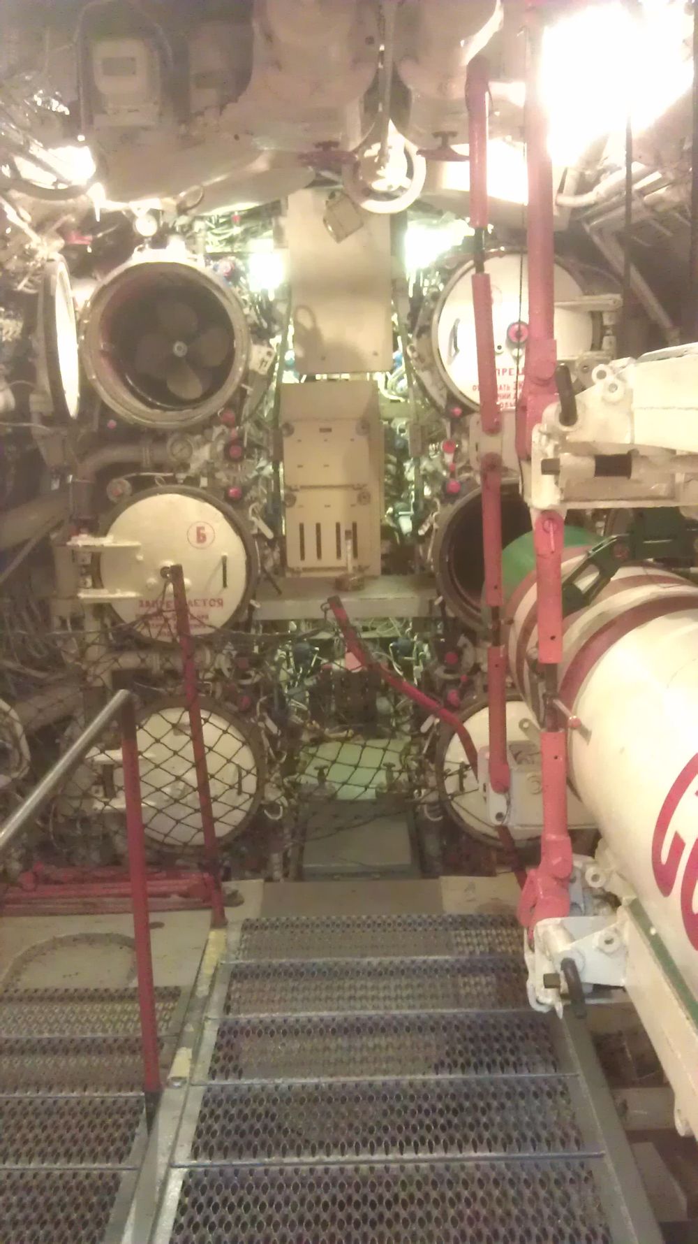 这个是海豚号的过道,没有采用圆形的通道口,因为是科研潜艇,没有装武器,住宿条件比后于它造的B-39好很多。 B-39的厕所地板甚至没有全封闭,便便时不注意把小物件滑进去没法找的,因为直接掉入下层非可进入的舱室去了。。。。。。海豚号还能洗澡,B-39恁是没能找到洗澡的地方。