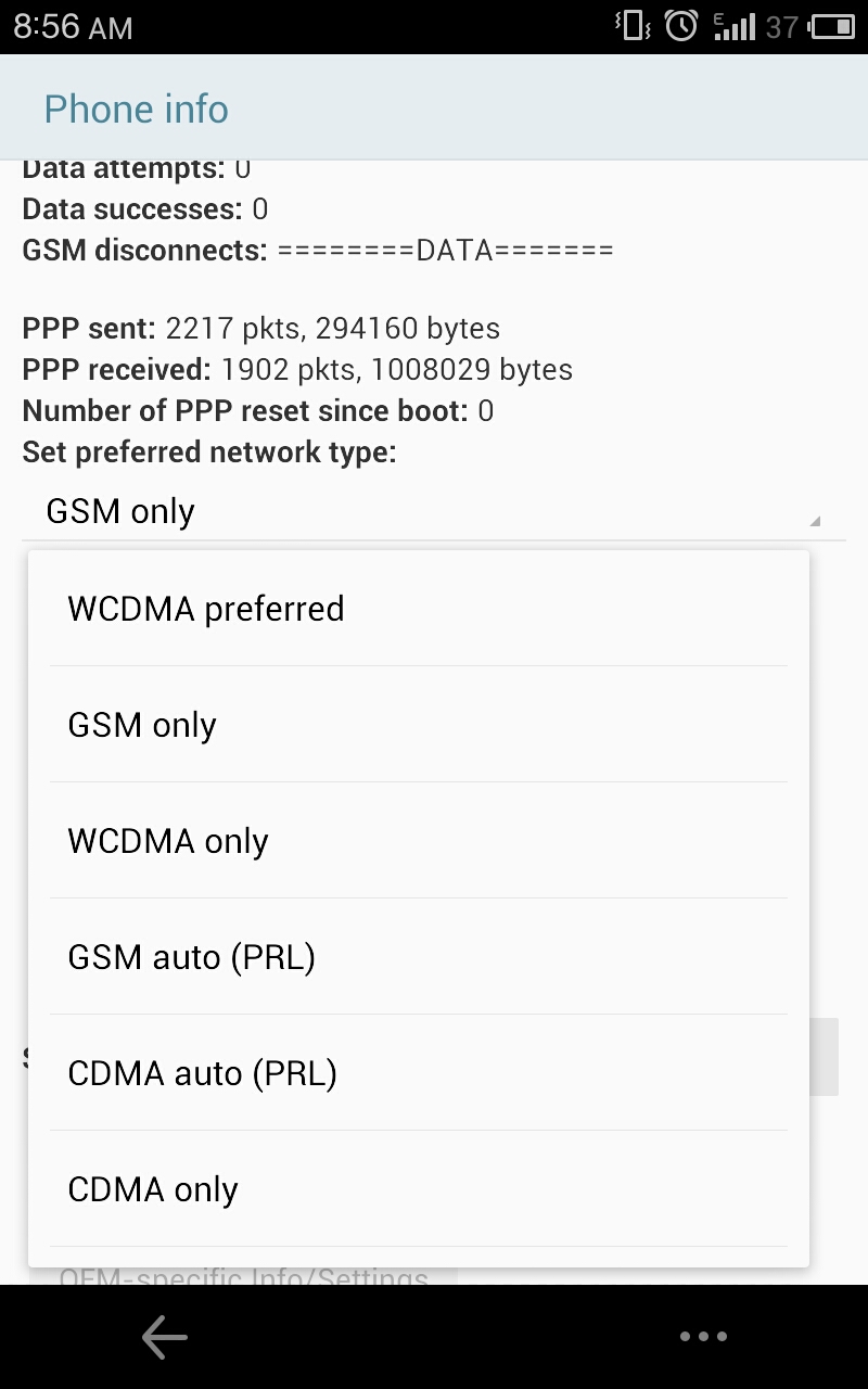 在拨号盘输入*#*#4636#*#* 然后在手机信息里改 倒数第二个大项 如图 选GSM Only就好了