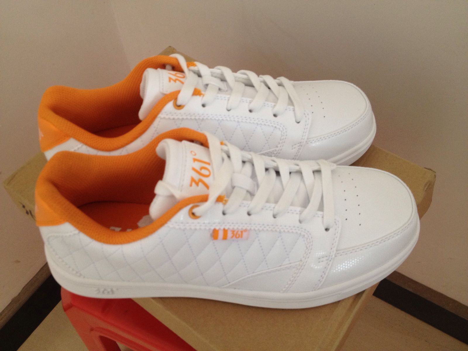 我有一双白色的361,穿了一天,就变成黄色的了