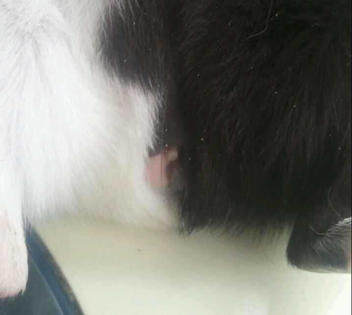 当初买猪的时候特意买了两只母的,但前几天看到笼子里有一个交配栓,怀疑有公的卧底进来了,仔细观察很久,终于有了怀疑对象,大家帮我判断一下啊