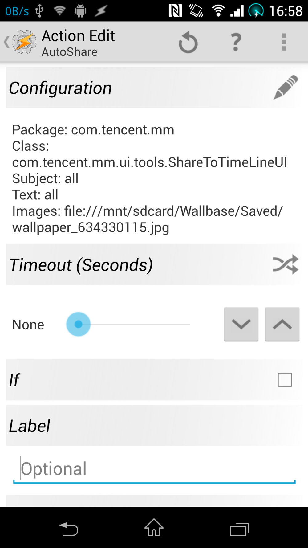 折腾了一上午一直没琢磨透~如图所示,到了第5步,执行autoshare后,会弹出“choose app”的选择菜单(即分享途径,比如蓝牙,短信,微博,QQ空间,微信朋友圈等),也就是这一步无法自动执行~我想呢,能不能通过一些命令啥的自动分享到朋友圈?