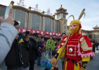 孙悟空“快闪”北京站 售票厅排队买票体验春运