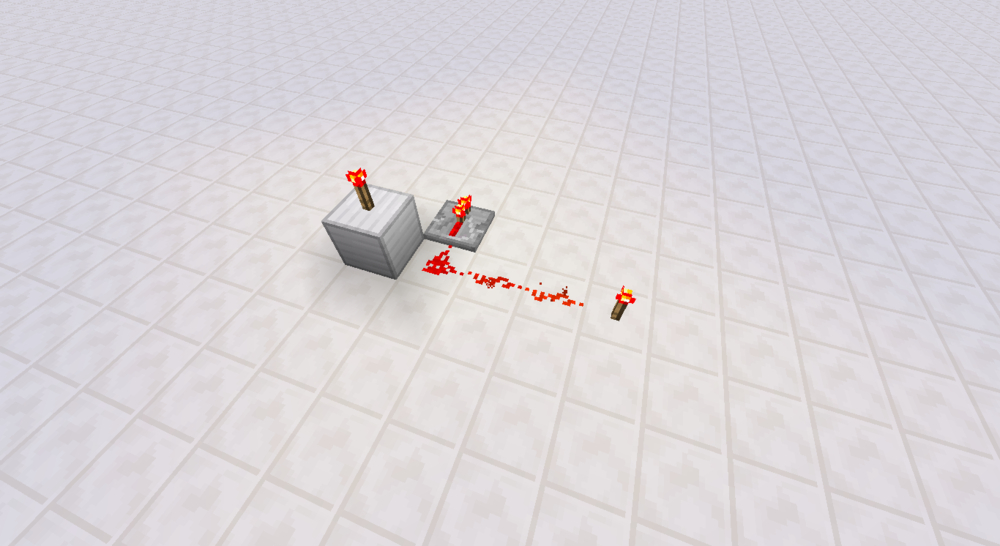 下图展示的是经典的模电异或门单元。注意比较器都要设置在减法模式,也就是比较器前端的红石火把要处于点亮状态。