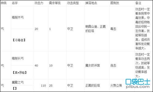 冰属性等道具的装备条件。