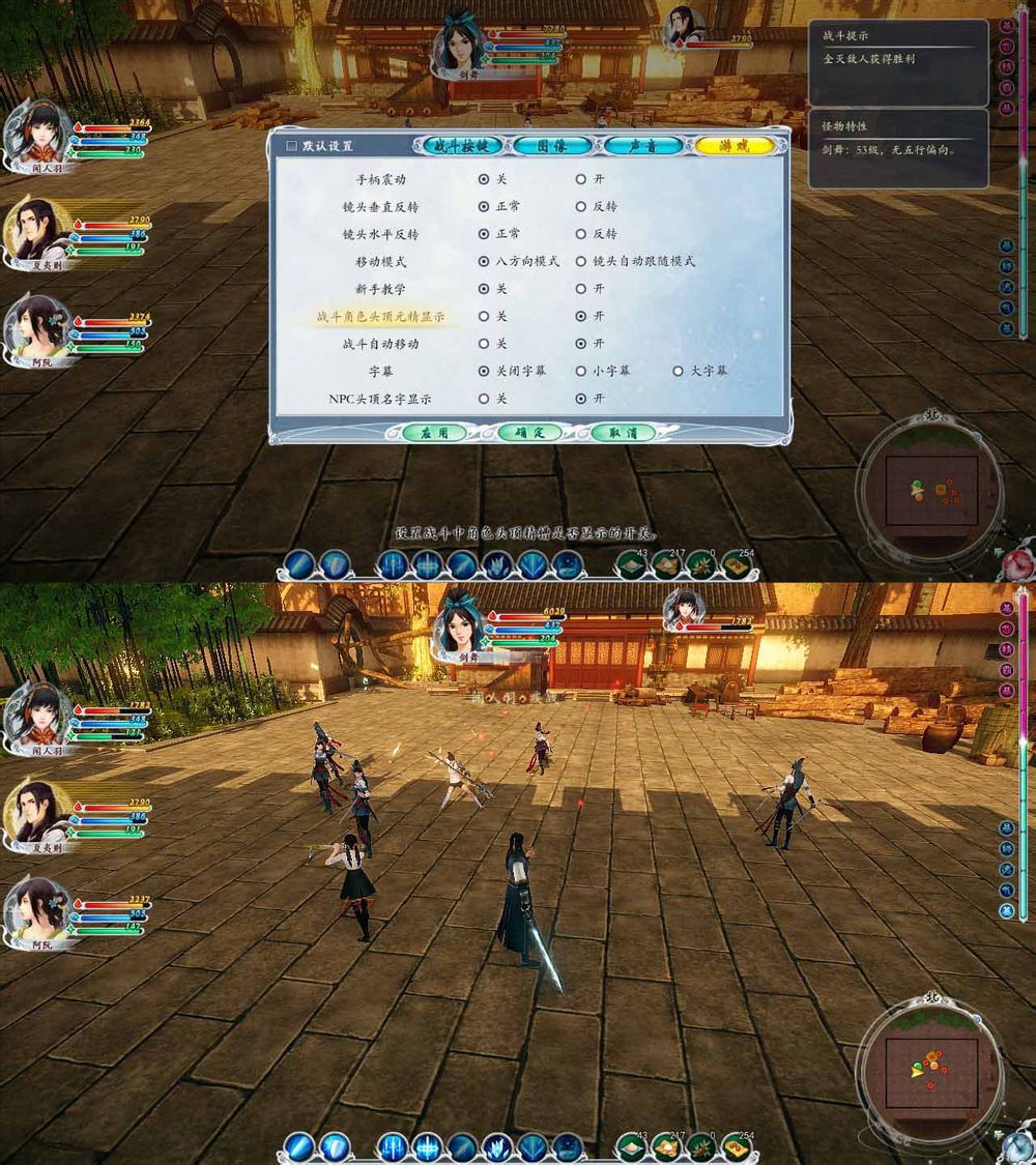 战斗头顶的血条选开也看不到,还有选定目标的黄色箭头也没有了