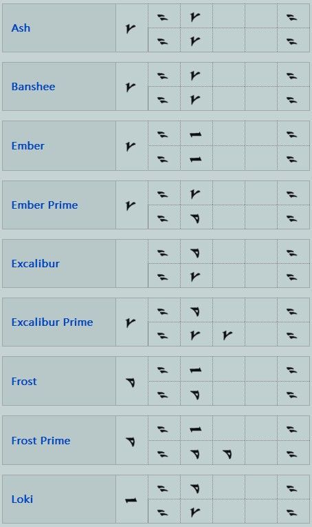 http://warframe.wikia.com/wiki/Warframes_Comparison