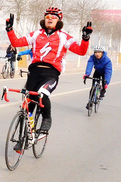 后来才知道,那俩一直想甩我们,所以动不动就突然加速,他们并不是怕后面追上,因为后面完全看不到人,他们就是想甩我和刘超然。路途中他们俩中的一个还突然跑到汽车道,就是不想让我们跟车,可是他们俩中的另一个没明白他的意思,无奈之下那个人又回来领骑了…………汗就是这样,跟上了第一集团,拿奖是很简单的事情。冲刺时候腿抽筋了,结果又被车了,啊那时候我的腿真是疼的不行啊啊。我连忙让他们放我下来。这时学姐说:我帮你压腿把学姐可是学医的……