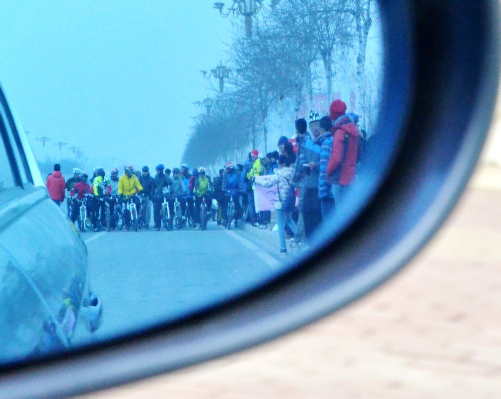 比赛的起点周围真是混乱啊。。。我有几次都忘记我把车放哪了。钱收了,免责收了。公路组就开始比赛了。(没有零钱,我用五十块钱跟别人换了47块钱。刘畅没有参赛,但是我把他的20也交了,许一凡说这钱找高总要)