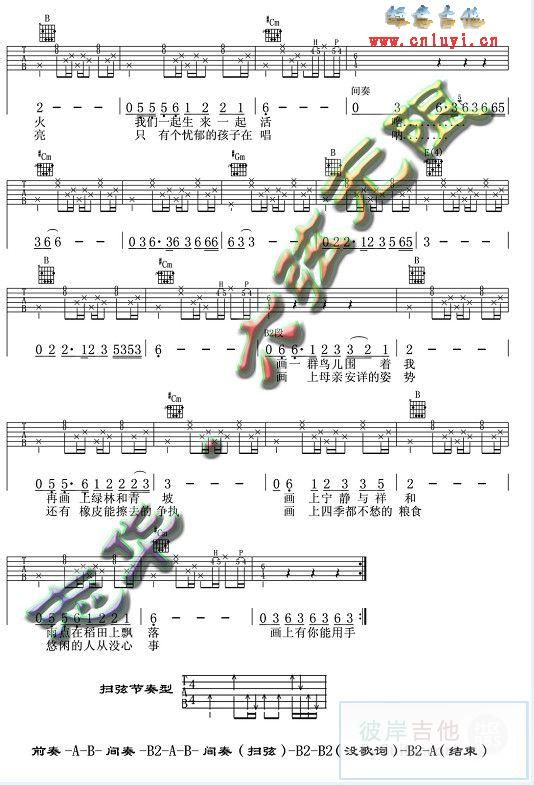 吉他谱诶,待会我用吉他试试,好久没玩了