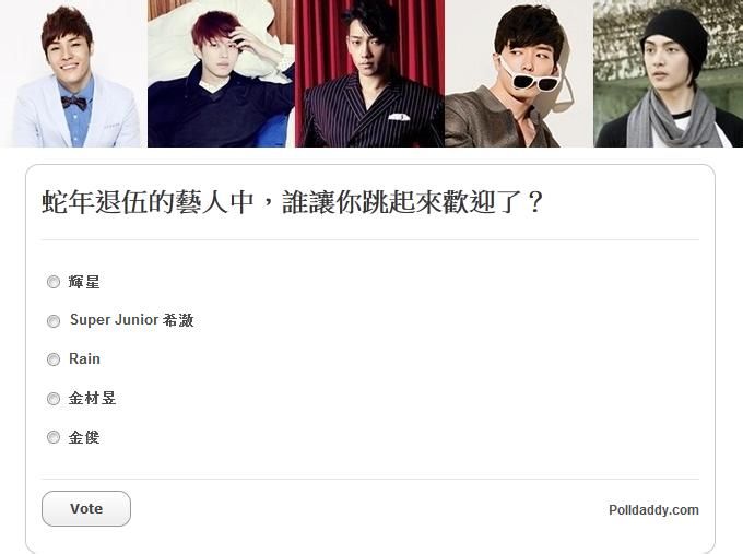 蛇年退伍的艺人中,谁让你跳起来欢迎了?(帮希澈投票)