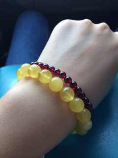 金黄蜜蜡配紫红小石榴