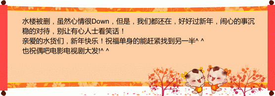 度娘新年又出幺蛾子,艾特的没看到,还是跑进来看了一下才看到地主闲的深情呼唤。新年快乐,早点看见偶吧人品大爆发,身体健康,永远开心