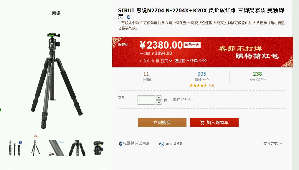 我看中了思锐的三脚架 一个是n2204+k20x 碳的 一个是n2004kx+k20x铝