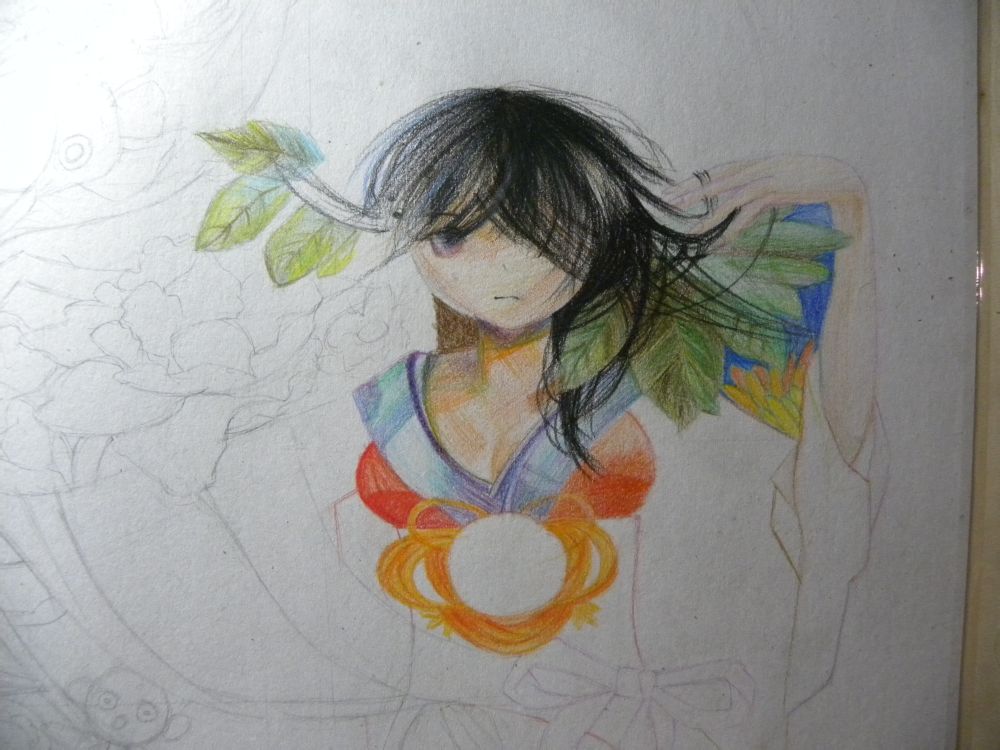 咳咳……这幅画一直从去年暑假画到现在QAQ(你可以再慢一点吗?QAQ)啊……趁现在过年,有大把的美好时光,每天拜完年后回到家就搬着画板爬向电脑QAQ(没画集的孩纸伤不起QAQ)啊……到现在画完我都在颤抖……真的不敢相信姑娘我竟然画完了QAQ!真是丧心病狂!!!!!!!!!!4k啊我的玉皇大帝圣祖母观音奶奶啊!!特么的虐死我了!!彩铅都短了一大截!!QAQ啊……绝逼不会再画这么虐的画了!!