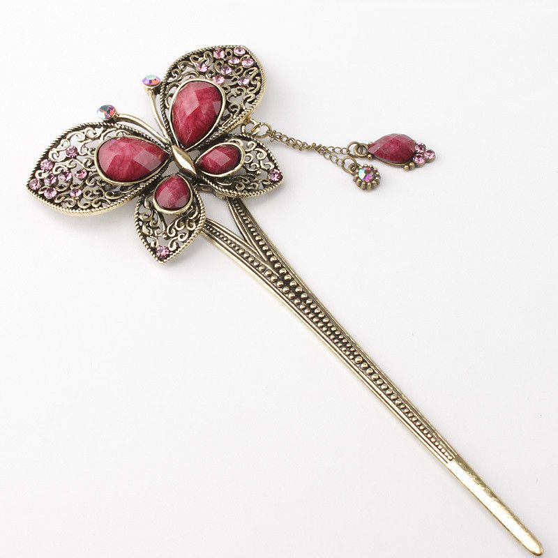样起固定发髻之用。在前端加以纹饰,雕刻成植物(花草)、动物(凤凰孔雀)、吉祥器物(如意)等形,并可用金、玉、象牙、玳瑁等贵重材料制作,工艺也愈发丰富,有錾花、镂花及盘花等。