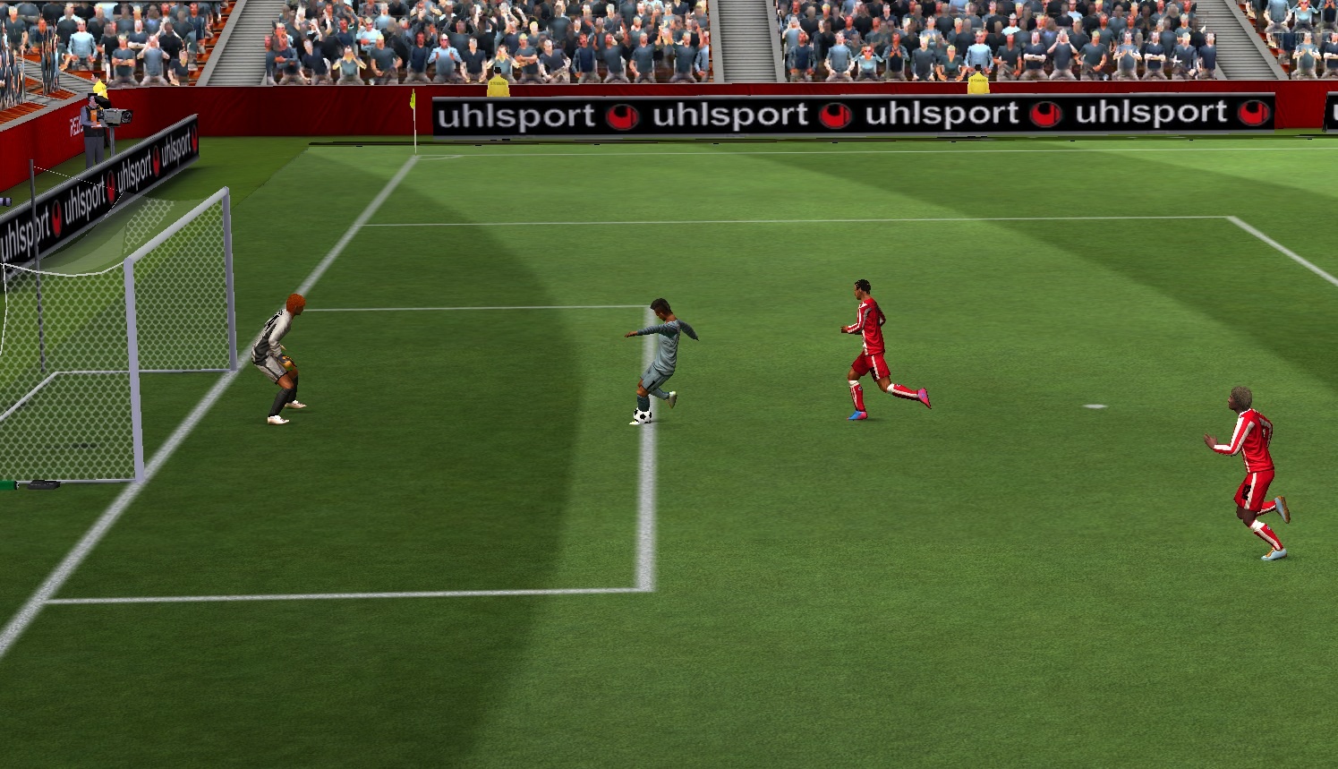 如果是巴神——技巧为“大力射门”,足球会像炮弹一样在空中划出弧线,用Free视角看回放录像,会发现足球几乎是从球门之外旋回来的。