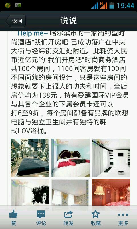 去今天群里发的那个“我们开房吧”简约宾馆 看图片不错!