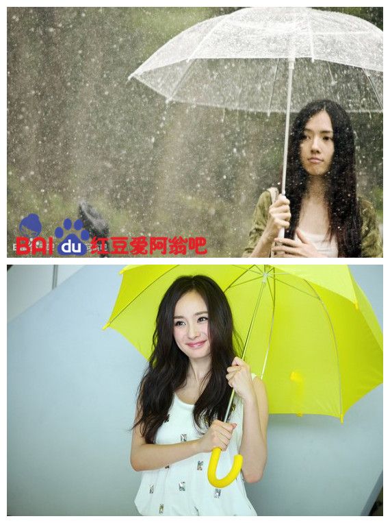 同样是打伞,妹花冷艳女神,幂幂可爱伶俐。