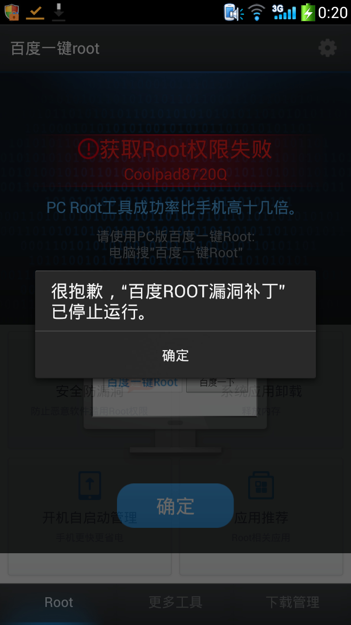 Cool pad8720q一键root失败?!