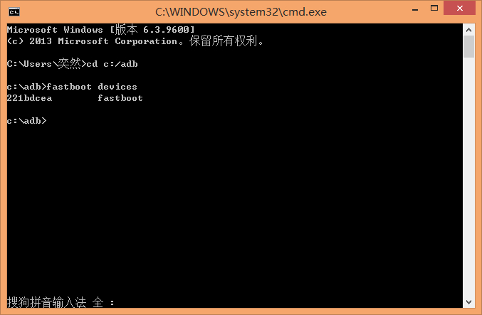 输入fastboot devices回车