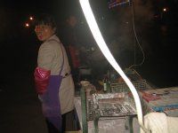 这是一次夜晚,一个路边小吃摊,一碗面5块,一个蛋1元,这位大妈或许40左右已然失去一个女人应有的容颜和魅力,又或许更年轻,笑的十分灿烂,我不知她生活如何,只觉一份心酸。香奈尔如是说,每一个女人都应光芒万丈,我他妈的现在想给她一巴掌,好吧,我又激动了。。。这个图片是我认为我骑行最好的一张,让我忽略任何风景,让我想起我自己也有这样一份承受,生命中不能承受的或许就是如此,它可以让我何时想起,心里有份支撑,一份感动,不是为自己而活,临走买了三瓶水,或许我只能这样,或许不够,现在,念安!