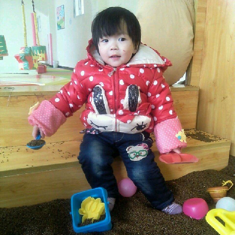 芽芽也不会走呢。快了,穿的少了就会了