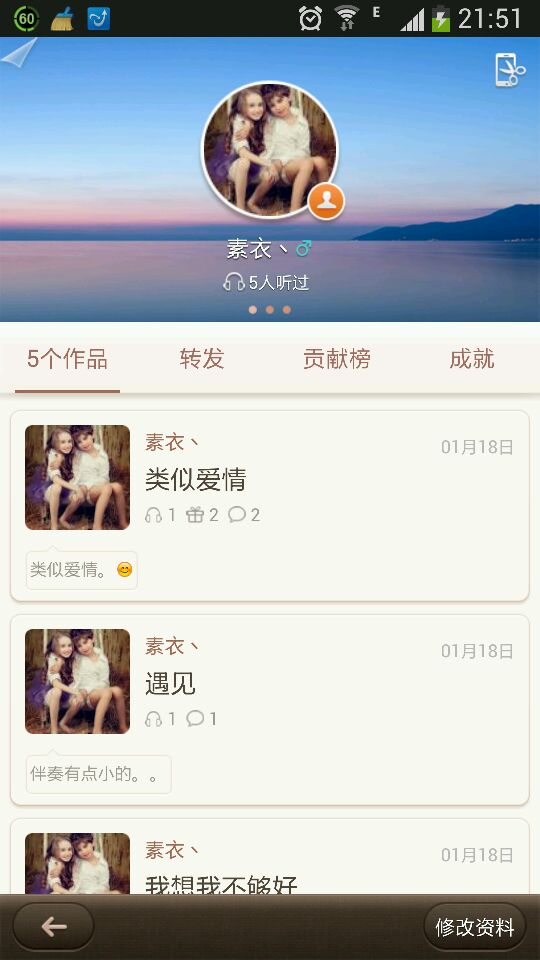 大家可以去听听我的作品,觉得不好听可以不粉我,但是你粉我我肯定会粉你的,希望我们能够互相学习互相进步