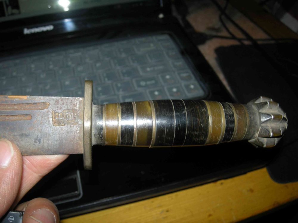 回复 我爱刁吧 :楔状刀形,三血槽,五角星,对称穿心柄,都是自卫反击的特色,只是年份不符