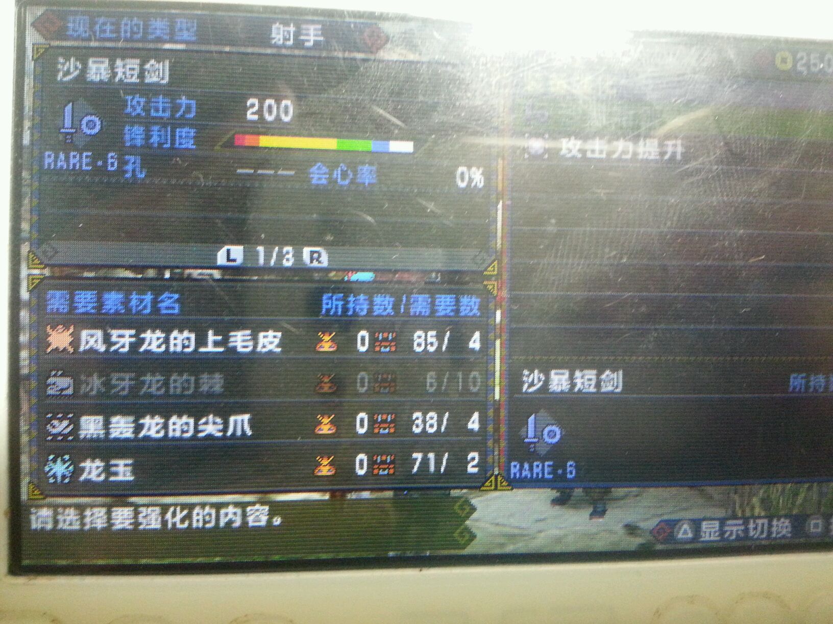当时我也特别奇怪这把刀 别的武器一般都是迅龙轰龙煌黑的才有白斩的 这把比较特别就做了 然后片手白。。一次没用过