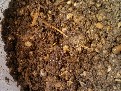我的矮牛出苗了,看到没,两个小绿点